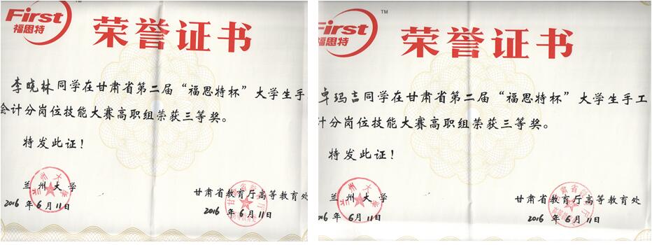 經(jīng)濟管理系會計電算化大專班四名學(xué)生在李惠蘭老師帶領(lǐng)下于2016年6月10日赴蘭州大學(xué)參加了甘肅省第二屆“福思特”大學(xué)生手工會計分崗位技能競賽。