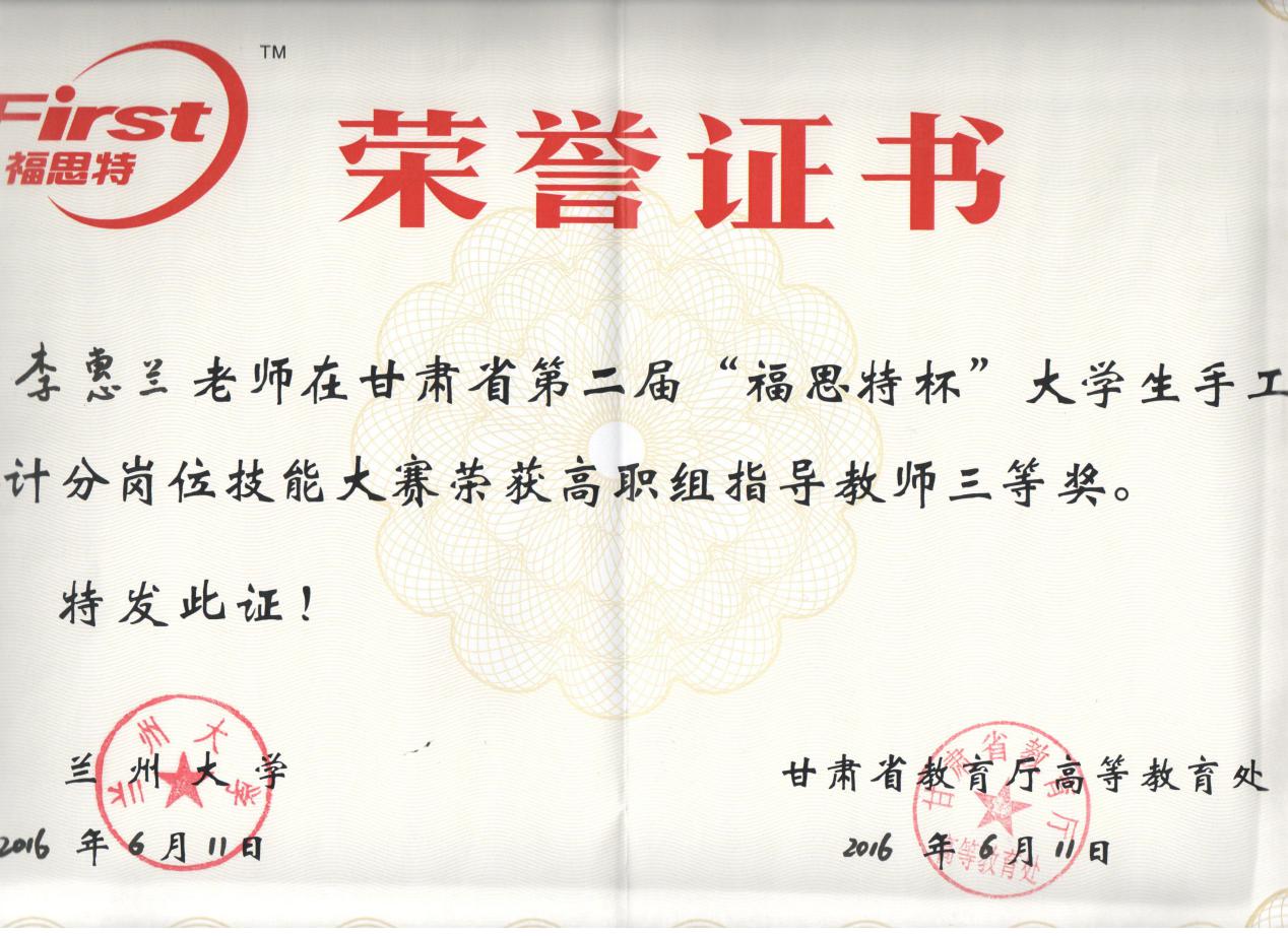 李惠蘭老師榮獲高職組指導(dǎo)教師三等獎。