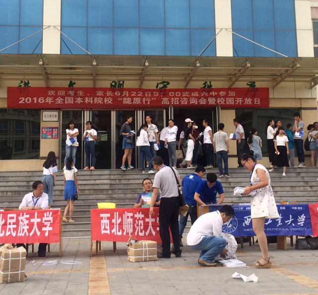 同一天,招生就業(yè)處還選派老師參加了在武威六中舉行的由《未來導(dǎo)報》主辦的“2016年全國本科院?!]原行’高招咨詢會”,就考生和家長關(guān)心的相關(guān)熱點問題進行了現(xiàn)場答疑解惑,考生及家長表示對他們掌握各院校熱門專業(yè)和報考要求有很大幫助。