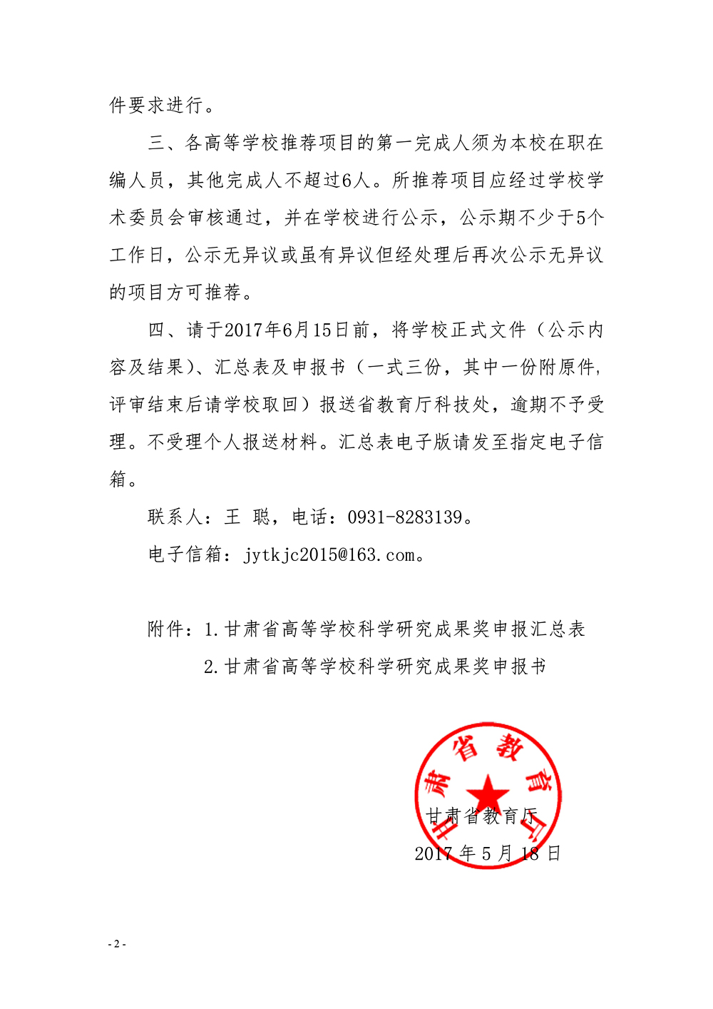 轉(zhuǎn)發(fā)甘肅省教育廳關(guān)于申報(bào)2017年度高等學(xué)??茖W(xué)研究?jī)?yōu)秀成果獎(jiǎng)的通知
