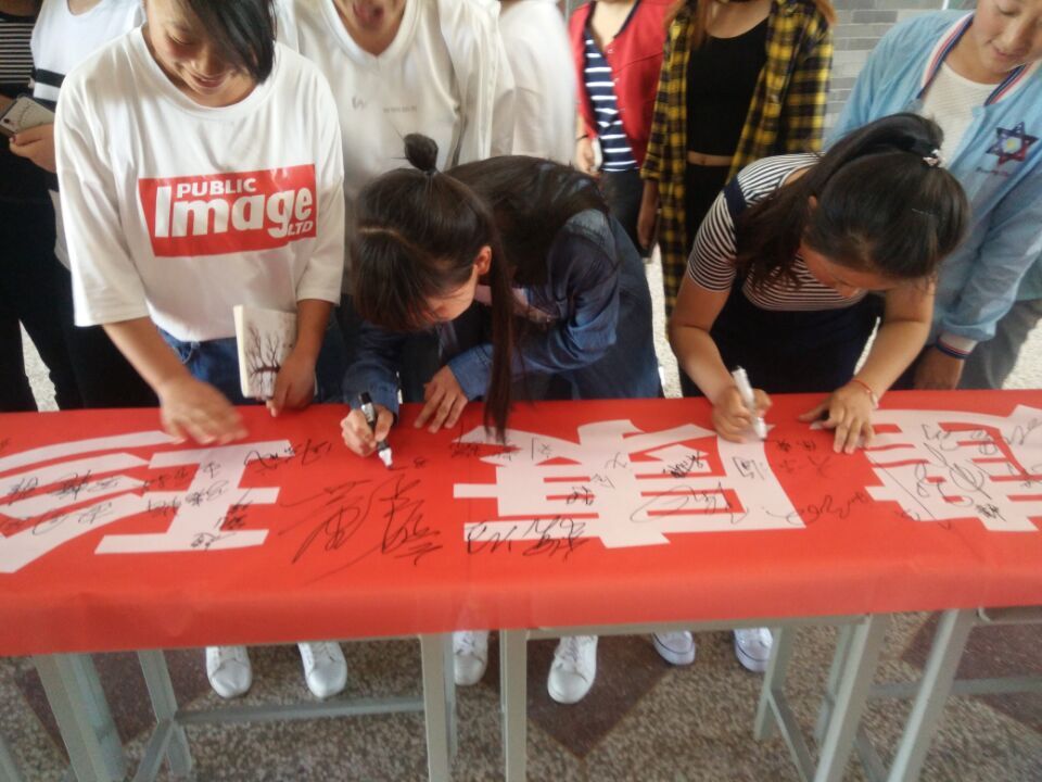 5月22日,系團(tuán)學(xué)會(huì)制作橫幅標(biāo)語“關(guān)注健康、珍愛生命”,召集簽名活動(dòng)。