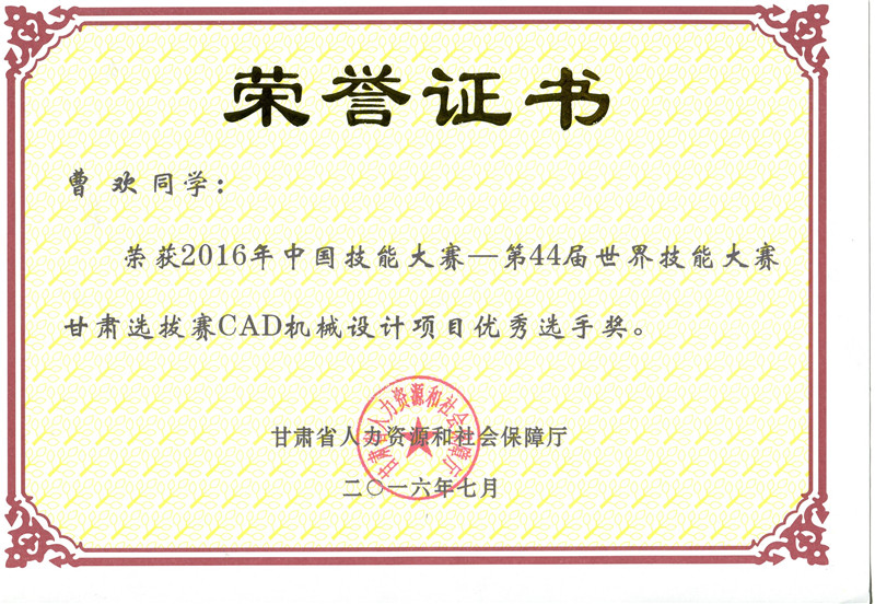 - 下一篇:2016年中國技能大賽甘肅選拔賽機(jī)電一體化技術(shù)項(xiàng)目優(yōu)秀獎[ 06-21 ]