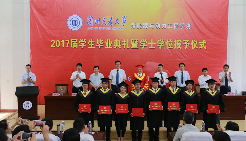 蘭交大教務(wù)處副處長王海涌宣讀了關(guān)于授予學(xué)士學(xué)位的決定;學(xué)生處處長貢力宣讀了關(guān)于表彰2016屆優(yōu)秀畢業(yè)生的決定;校黨委副書記、常務(wù)副校長李引珍為2017屆畢業(yè)生代表正冠撥穗并頒發(fā)學(xué)位證書;各位領(lǐng)導(dǎo)為畢業(yè)生頒發(fā)了畢業(yè)證書和優(yōu)秀畢業(yè)生榮譽證書。