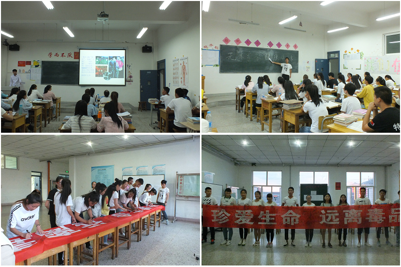 6月26日晚,全系各班利用晚自習時間召開了“無毒青春,健康生活”的主題班會活動,班主任們結(jié)合圖片資料向同學們詳細揭示了毒品的性質(zhì)、種類、特征等知識,同時結(jié)合收集到的吸毒案例,深入淺出地給學生論述和分析了毒品的危害,以血的教訓、鐵的事實告誡大家認清危害,樹立自我保護意識。