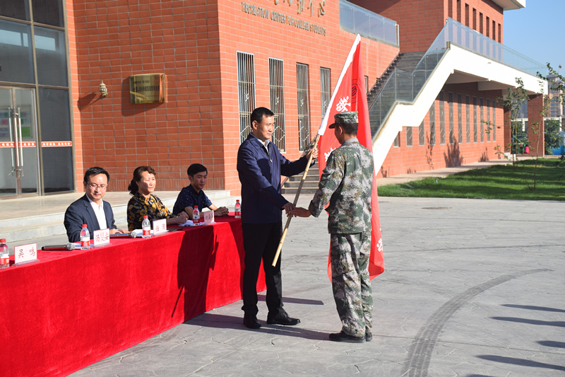 動員大會在莊嚴(yán)的國歌聲中開始,學(xué)院學(xué)工辦負責(zé)人劉菊萍就訓(xùn)練時間、訓(xùn)練紀(jì)律要求等方面做了具體的安排。軍訓(xùn)教官代表王雯和新生代表張林旺分別發(fā)言表態(tài)。湯旻安代表學(xué)院在會上作了軍訓(xùn)動員講話。他強調(diào),同學(xué)們要在軍訓(xùn)過程中要提高認(rèn)識、端正態(tài)度,真正把軍訓(xùn)作為大學(xué)生的一門必修課;刻苦訓(xùn)練、認(rèn)真學(xué)習(xí),在訓(xùn)練中樹立不怕苦、不怕累的精神,確保訓(xùn)練效果;嚴(yán)格要求、強化管理,確保軍訓(xùn)工作緊張、有序、安全;講文明樹新風(fēng)、除陋習(xí)展形象,樹立良好風(fēng)尚,展示新時代大學(xué)生的風(fēng)采;以人為本、科學(xué)施訓(xùn),確保軍訓(xùn)工作取得實效。最后,由湯旻安向軍訓(xùn)教官授旗,標(biāo)志著2017級新生軍訓(xùn)正式拉開帷幕。