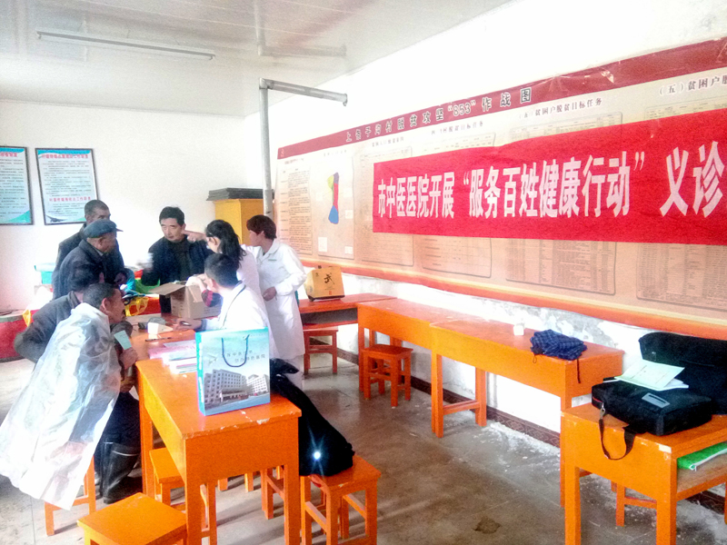 走訪調(diào)研活動結(jié)束后,醫(yī)務(wù)人員在村會議室開展送醫(yī)送藥義診活動。村民們踴躍前來診病,都說城里的大夫好,不但免費(fèi)為我們開方,而且還免費(fèi)送藥。