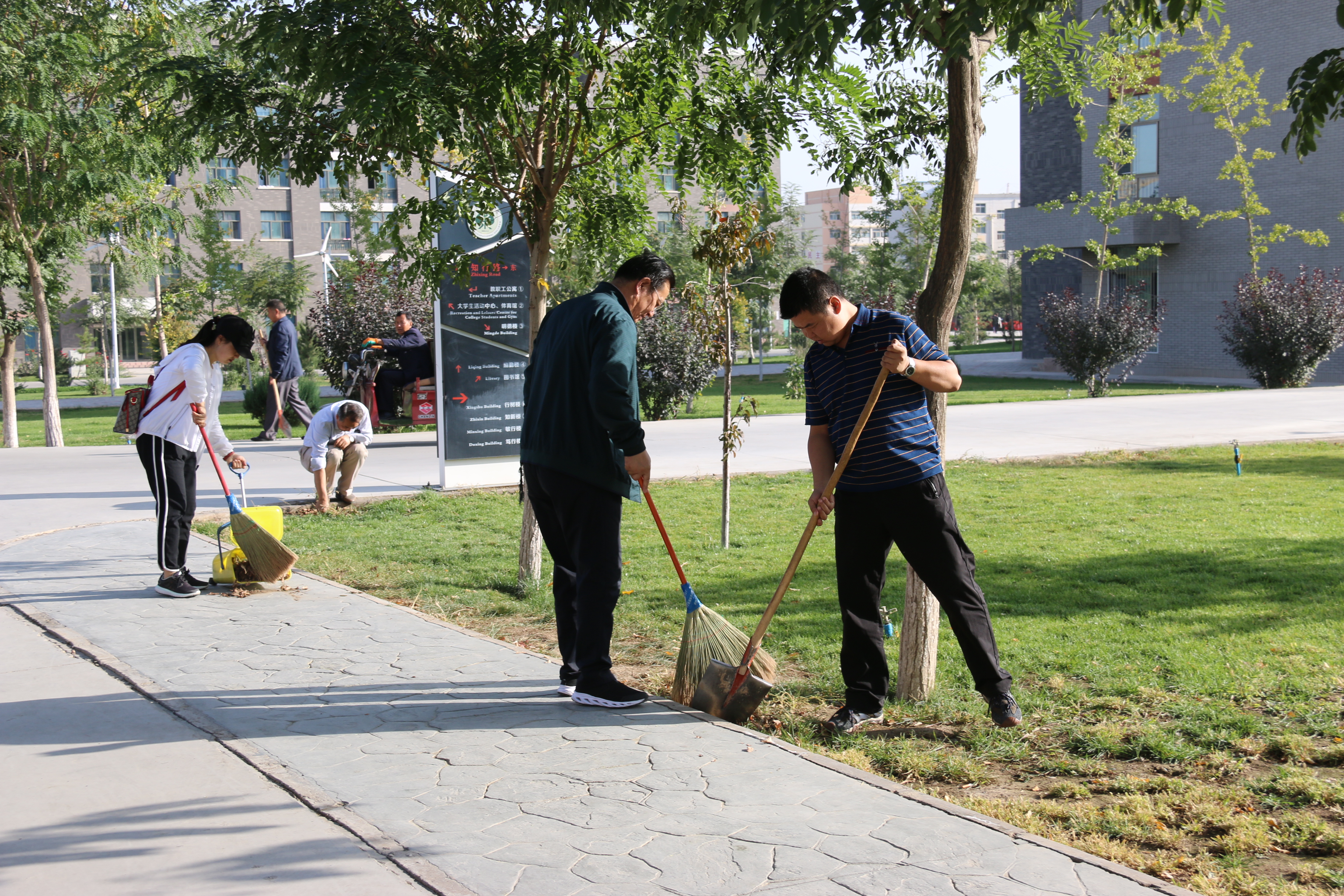 活動(dòng)現(xiàn)場(chǎng),大家紛紛拿起掃把、鐵鍬、簸箕、夾子等衛(wèi)生清潔工具,按照事先劃分的區(qū)域和責(zé)任分工對(duì)校園內(nèi)主要道路、樓宇四周、過(guò)道、樹(shù)溝、草坪、花圃等地的囤積垃圾、枯枝落葉、建筑垃圾等進(jìn)行了集中掃除,特別是對(duì)一些角落堆積的垃圾進(jìn)行徹底清理。