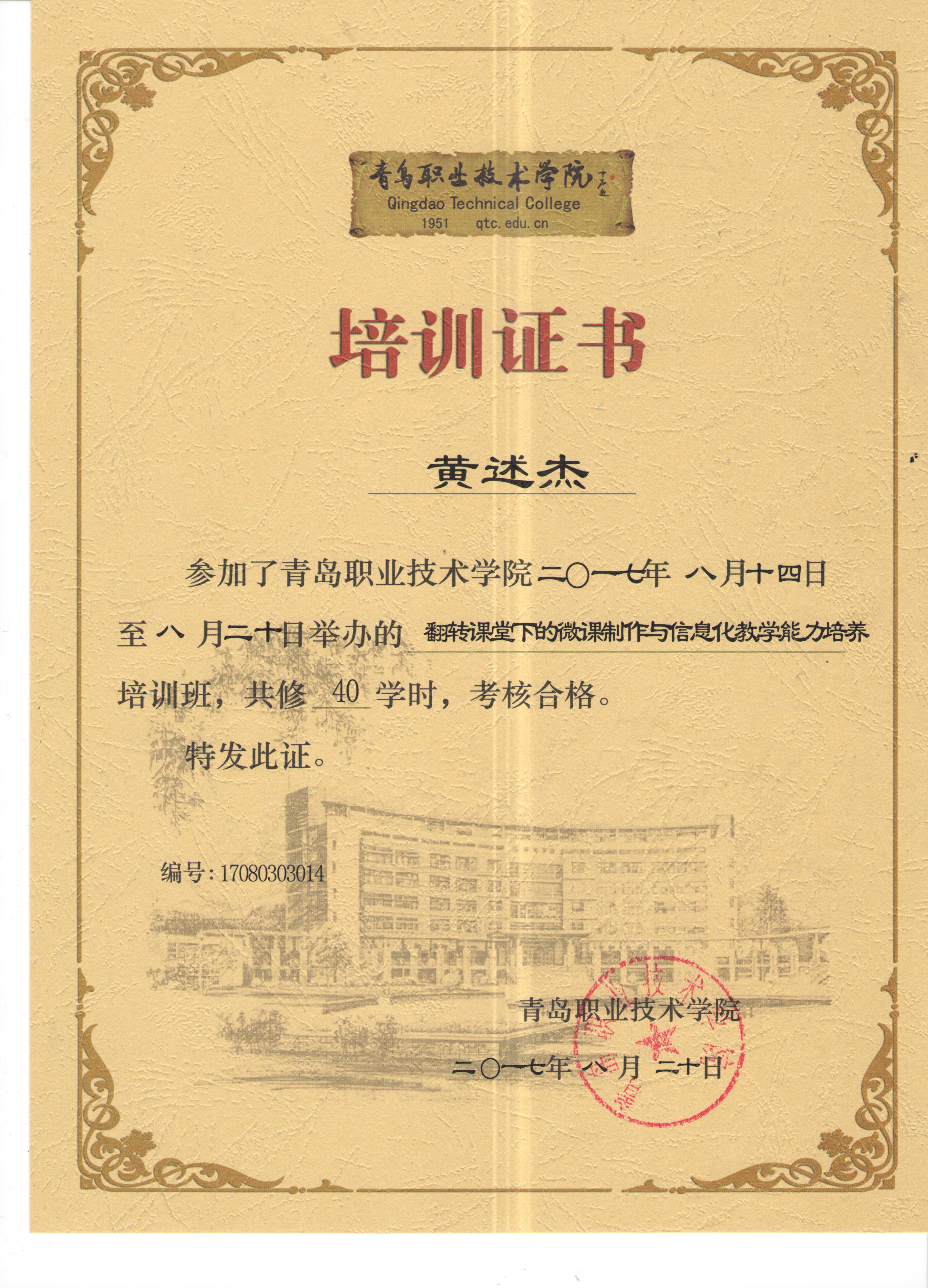 2017年8月15日至8月20日,我參加了由青島職業(yè)技術(shù)學(xué)院舉辦的暑期《翻轉(zhuǎn)課堂下的微課制作與信息化教學(xué)能力培養(yǎng)》培訓(xùn)班。本次培訓(xùn)青島職業(yè)技術(shù)學(xué)院魏偉教授主講。魏偉教授是2015年全國(guó)職業(yè)院校信息化教學(xué)大賽教學(xué)設(shè)計(jì)一等獎(jiǎng)獲得者,2016山東省職業(yè)院校信息化教學(xué)大賽評(píng)委。