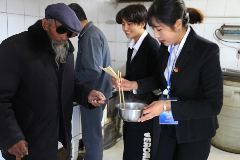 上午八點半,醫(yī)學技術與信息管理系各位黨員、入黨積極分子、團學干部、師生代表在廚房為老人包餃子,并整理被褥;康復治療專業(yè)教師黨員高萬飛為老人講解“如何健康養(yǎng)生”;系團總支為老人們送上毛巾、牙膏、香皂等日常生活用品;愛牙協(xié)會的志愿者為老人,進行牙齒檢查,講解如何愛護牙齒;中醫(yī)養(yǎng)生協(xié)會的志愿者為老人們測血壓,演示常用的按摩方法。中午時分,老人們吃著熱氣騰騰的餃子,看著全系師生代表為老人們準備的精彩節(jié)目,臉上洋溢著幸福的笑容。