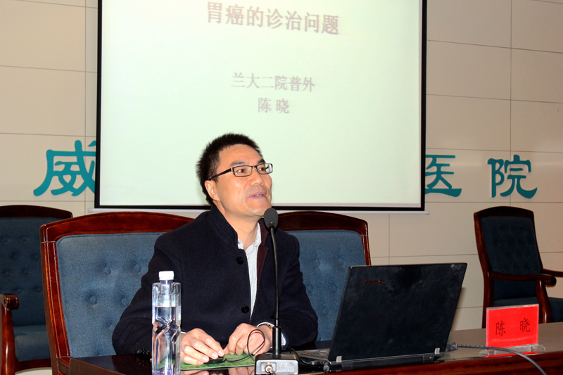 醫(yī)院邀請(qǐng)到蘭州大學(xué)第二醫(yī)院普外三科主任、胃腸外科主任、主任醫(yī)師陳曉和普外二科副主任,副主任醫(yī)師康博雄為大家作學(xué)術(shù)講座。陳曉主講了《胃癌的診治問(wèn)題》,并與大家分享了他在法國(guó)醫(yī)院和美國(guó)醫(yī)院進(jìn)修學(xué)習(xí)時(shí)的一些感想和見(jiàn)聞。陳曉在講座中結(jié)合臨床體會(huì)說(shuō):許多胃癌患者在就診時(shí)已經(jīng)發(fā)展為中晚期,失去了手術(shù)機(jī)會(huì)。他呼吁全社會(huì)要認(rèn)識(shí)到對(duì)胃癌高發(fā)地區(qū)、高危年齡、高危人群進(jìn)行篩查的必要性。醫(yī)生要對(duì)有癥狀的患者及早進(jìn)行胃鏡檢查,爭(zhēng)取做到早發(fā)現(xiàn)、早診斷、早治療。講座中,陳曉就外科手術(shù)吻合方式選擇與直屬附屬醫(yī)院外科主任滕志勇醫(yī)生進(jìn)行了現(xiàn)場(chǎng)互動(dòng)。