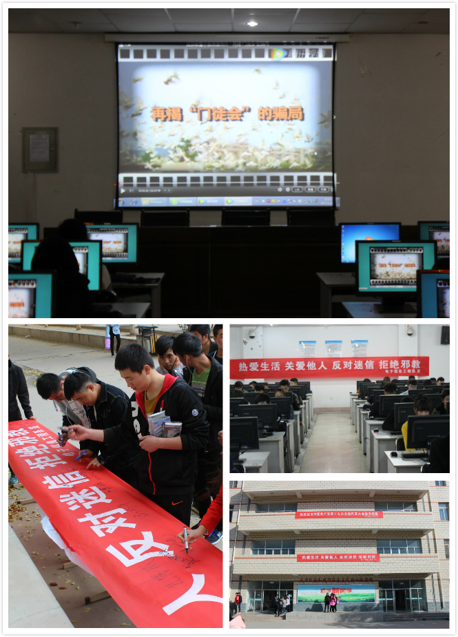 為了建設和諧校園,維護社會穩(wěn)定,凈化教育系統校園,電子信息工程于10月30日晚,在尚德樓11號機房開展了反邪教宣傳片放映活動。