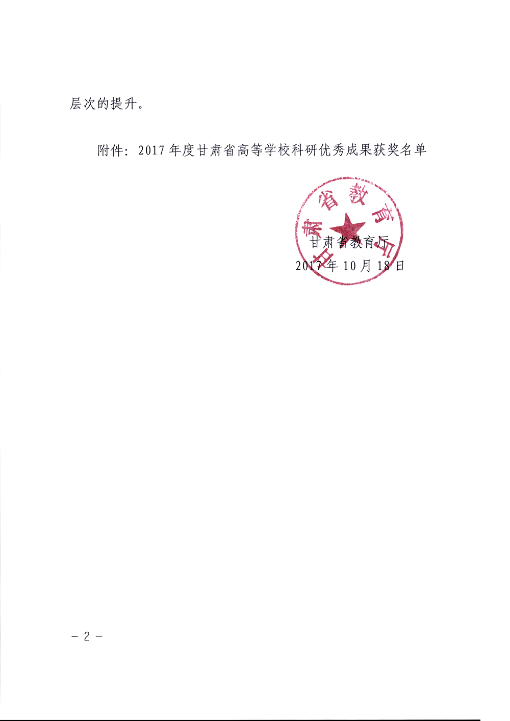 2017年度甘肅省高等學(xué)校科研優(yōu)秀成果獎(jiǎng)勵(lì)證書